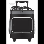 Large 16L trolley cooler bag with a two-stage pull up handle and robust dual wheels. It has thick PE foam insulation encased in a waterproof PEVA inner liner and the outer construction is 600D polyester with decorative ripstop nylon trim. Other features include a zippered top closure, two large side pockets, a large zippered front pocket, woven carry handles with a Velcro cuff and trendy elastic lacing which is ideal for holding a sweater or light jacket.